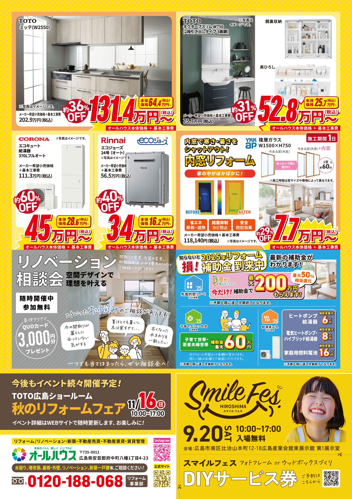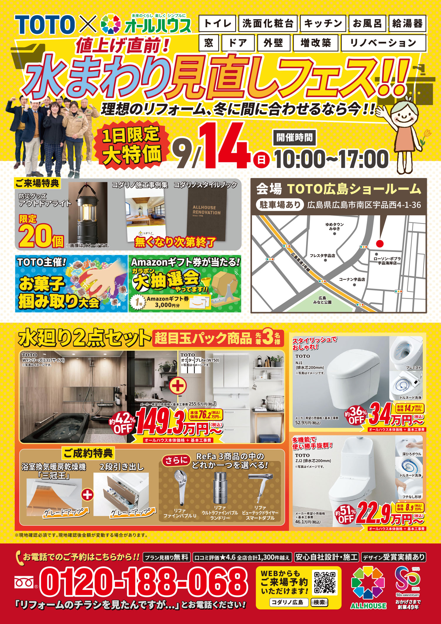 9月14日(日)、TOTO広島ショールームにて秋のリフォームフェス開催!