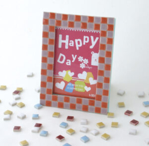 DIYコーナーで、モザイクタイルを使ったオリジナルフォトフレームづくりもあります。