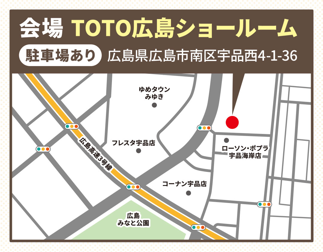 - 広島県広島市南区宇品西4丁目1-36 TOTOショールーム