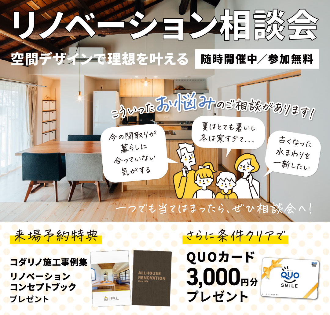 などなど日々の暮らしでのお困りごとがありましたら、リフォーム・リノベーションで解決できる可能性があります。