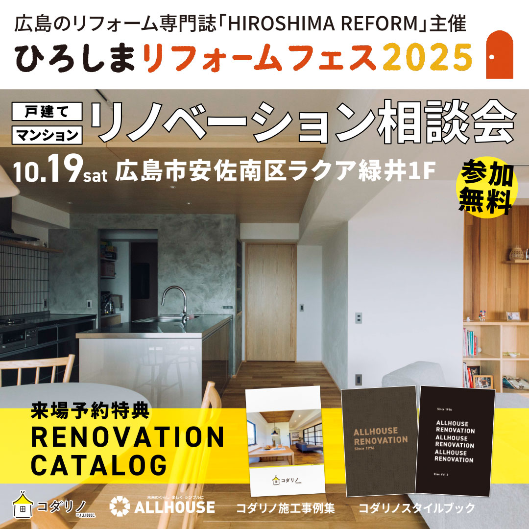 10月19日(日)ラクア緑井1Fセンターコートで開催されるひろしまリフォームフェス2025に出展いたします。今年2月の初開催が大好評につき、第2回目の開催です!