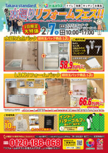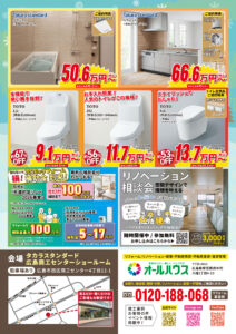 当日は幅広い世代の方に根強い人気があるタカラスタンダード様の最新のシステムキッチンや、温かいが続くユニットバス、人気のトイレ、洗面台など実際の商品を見ていただけます。