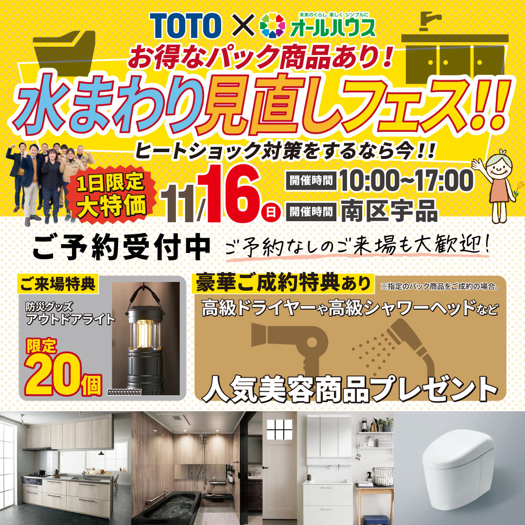 11月16日(日)、TOTO広島ショールームにて秋のリフォームフェス開催!
