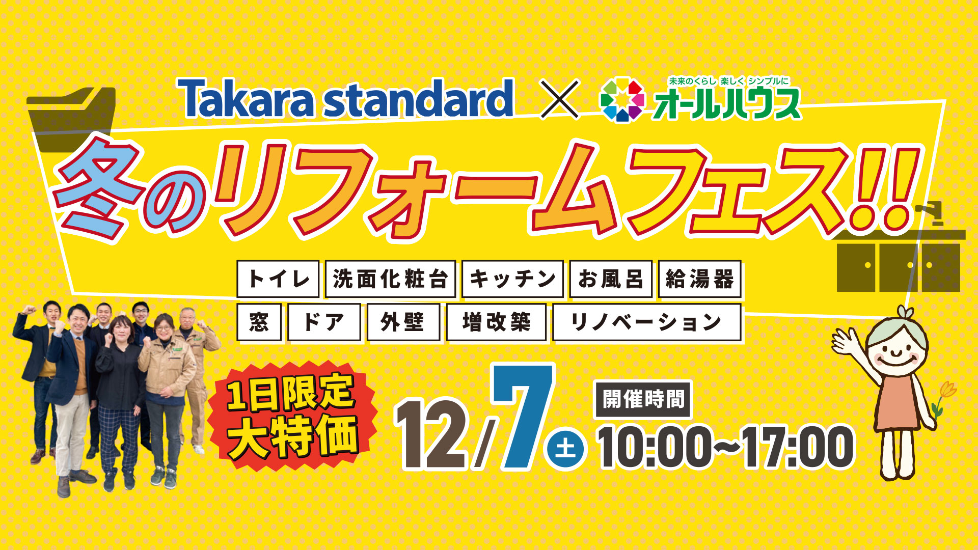 12.7(土)タカラスタンダード冬のリフォームフェス開催のお知らせ