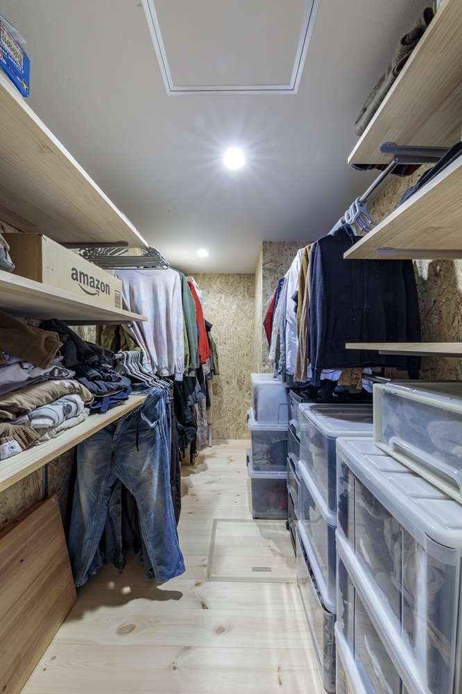 家族みんなの服や荷物をまとめて管理しやすいウォークインクローゼット、